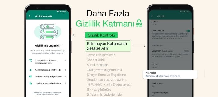 Şirket, WhatsApp‘ın spam aramalarını daha az rahatsız edici hale getirmek ve kullanıcıların en uygun gizlilik ayarlarını seçmelerine izin vermek için yeni bir güncelleme duyurdu. Bilinmeyen Kullanıcıları Sessize Alma ve Gizlilik Ayarı Kontrolü özellikleri yeni güncelleme ile kullanıcılara sunulmaktadır. Spam, dolandırıcılık girişimleri ve bilinmeyen kişilerden gelen aramaları otomatik olarak filtrelemeye yardımcı oluyor. Gelen şüpheli aramalar telefonunuzda çalmayacak, ancak aramanın önemli olduğunu ve yanıt vermeniz gerektiğini düşünüyorsanız, arama listenizde görünür hale gelecek. Çoğu kullanıcı için, bu pratiklik ve gizlilik açısından iyi bir kombinasyon sunmaktadır.